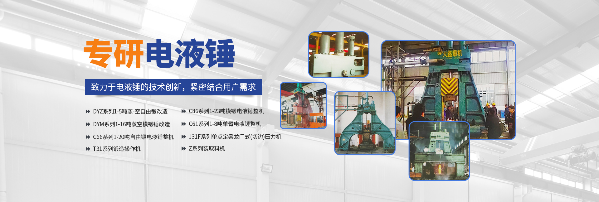 安陽市大鑫重機環(huán)保設(shè)備有限公司(原福士德),是一家專注研發(fā)生產(chǎn)電液錘的高技術(shù)企業(yè),隸屬安陽市殷都區(qū)企業(yè),企業(yè)創(chuàng)辦人研制電液錘已有二十多年歷史,積累了豐富的經(jīng)驗和技術(shù),使產(chǎn)品技術(shù)始終處于國內(nèi)水平,并已生產(chǎn)銷售近百臺電液錘,受到用戶廣泛好評。企業(yè)座落在享有“鍛錘之鄉(xiāng)”的安陽市殷都區(qū)——安姚路東段。廠區(qū)占地面積20畝,車間建筑面積3000多平萬米。企業(yè)現(xiàn)有正式員工177人,其中工程師3人,工程師及以下職稱工程技術(shù)人員19人。企業(yè)設(shè)有“六部四車間(公司)”,即銷售部、管理部、技術(shù)部、質(zhì)保部、制造部、工程部、財務(wù)部;鉚焊車間、機加工分公司(輝縣市億豐重工有限公司)、裝配車間。擁有主要加工和檢測設(shè)備二十多臺(套)。企業(yè)主導(dǎo)產(chǎn)品為系列電液錘及輔機:DYZ系列1-5噸蒸-空自由鍛改造DYM系列1-16噸蒸空模鍛錘改造C66系列1-20噸自由鍛電液錘整機C86系列1-23噸模鍛電液錘整機C61系列1-8噸單臂電液錘整機J31F系列單點定粱龍門式(切邊)壓力機T31系列鍛造操作機Z系列裝取料機產(chǎn)品“單一”的企業(yè)特點凸顯企業(yè)“專注”電液錘研發(fā)的顯著特色。這一特點是基于企業(yè)自身情況下的企業(yè)頂層設(shè)計理念;規(guī)模定位“中而強”,技術(shù)瞄準“特而新”,產(chǎn)品必須“專而精”。技術(shù)創(chuàng)新是企業(yè)發(fā)展的導(dǎo)向。多年來,企業(yè)始終專注于電液錘的技術(shù)創(chuàng)新,緊密結(jié)合用戶意見和要求,不斷升級產(chǎn)品技術(shù)水平,例如,對系統(tǒng)進行全方位優(yōu)化設(shè)計,進一步提高設(shè)備節(jié)能效果;對系統(tǒng)主要性能參數(shù)進行數(shù)顯改造升級,提高設(shè)備的可操作性;對“氣-液”系統(tǒng)進行優(yōu)化設(shè)計,使錘能夠發(fā)揮打擊能量;對“專用閥”系統(tǒng)進行優(yōu)化設(shè)計,降低液阻,提高操作靈活性;對“錘桿密封”系統(tǒng)進行“巧妙”設(shè)計并選用進口密封件,大幅度提高密封壽命……質(zhì)量保證是企業(yè)的生命。技術(shù)創(chuàng)新為產(chǎn)品質(zhì)量保證打下堅實的基礎(chǔ)。同時企業(yè)始終貫徹“ISO9001:2000質(zhì)量管理體系“的“大質(zhì)量”觀念,各部門以“質(zhì)量程序文件”為指導(dǎo),齊抓共管。用每個人的工作質(zhì)量,來保證過硬的產(chǎn)品質(zhì)量。質(zhì)檢部門實行“工序道道必檢,零部件件件必檢”的工作原則,既不能讓不合格零部件流入下工序,更不能讓不合格件出廠。采購部門實行“貨比三家,價高必須優(yōu)質(zhì)”的原則,嚴格保證外購件具有高的“性價比”。質(zhì)量檢驗的“原始記錄”為每個零部件建立了檔案,保證產(chǎn)品質(zhì)量的“可追溯性”。用戶服務(wù)是企業(yè)的良心。我們把“急用戶之所急,想用戶之所想”當(dāng)做企業(yè)的良心來以一貫之。用“換位思考”(假如我是用戶)的理念替用戶著想,并做到“及時、高 效、全 面”地為用戶服務(wù),確保“顧客滿意率達到95%以上。正所謂“金獎銀獎,不如用戶夸獎”。胸懷《道德經(jīng)》,“大鑫”行天下。企業(yè)一貫堅持“文化興企”的管理理念,蓄他人之長,集團隊智慧,以超前的思維,不斷賦予企業(yè)文化新的內(nèi)涵。在國家工商總局注冊的“大鑫”牌商標,賦予其深刻的文化內(nèi)涵(大信問天,大道致遠;錘煉金典團隊,鑄金質(zhì)品牌,健步金光大道。),為自己的產(chǎn)品和服務(wù)打上了誠信的印記,走出了一條“用文化品牌戰(zhàn)略,企業(yè)不斷發(fā)展狀大”的成功之路。安陽市當(dāng)屬歷史文化名城,七大古都之首,殷商文化發(fā)源地。旅游景點精彩呈現(xiàn):殷墟博物院、中國文字博物館、曹操高陵、袁世凱陵、岳飛廟、馬氏莊園、紅旗渠、太行大峽谷……安陽市位于河南省北部,是京廣鐵路、京珠高鐵、京珠高速、107國道的經(jīng)由城市。南距鄭州機場200公里,北距邯鄲機場40公里。交通十分便捷。熱忱歡迎新老用戶蒞臨我公司考察指導(dǎo)!